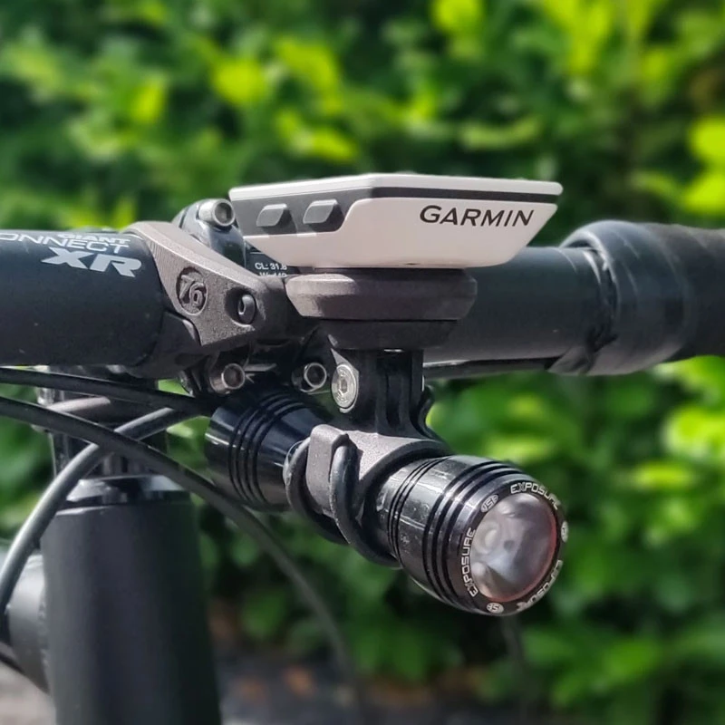 Mit dieser Halterung kann eine Exposure Trace-Frontlampe an allen Adaptern mit GoPro-Standardanschluss angebracht werden. Ideal für die vielseitige Modular-Computerhalterung von 76 Projects, die mit dem seperat erhältlichen GoPro-Adapter dafür ausgerüstet werden kann. Eine Aero-Version zur Befestigung direkt am Computerhalter, ohne GoPro-Adapter ist ebenfalls erhältlich, diese trägt entsprechend etwas weniger auf. Die Lampe wird mit dem beiliegenden Silikonband stabil befestigt.