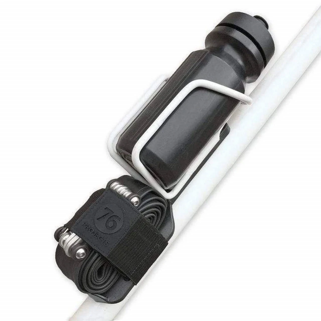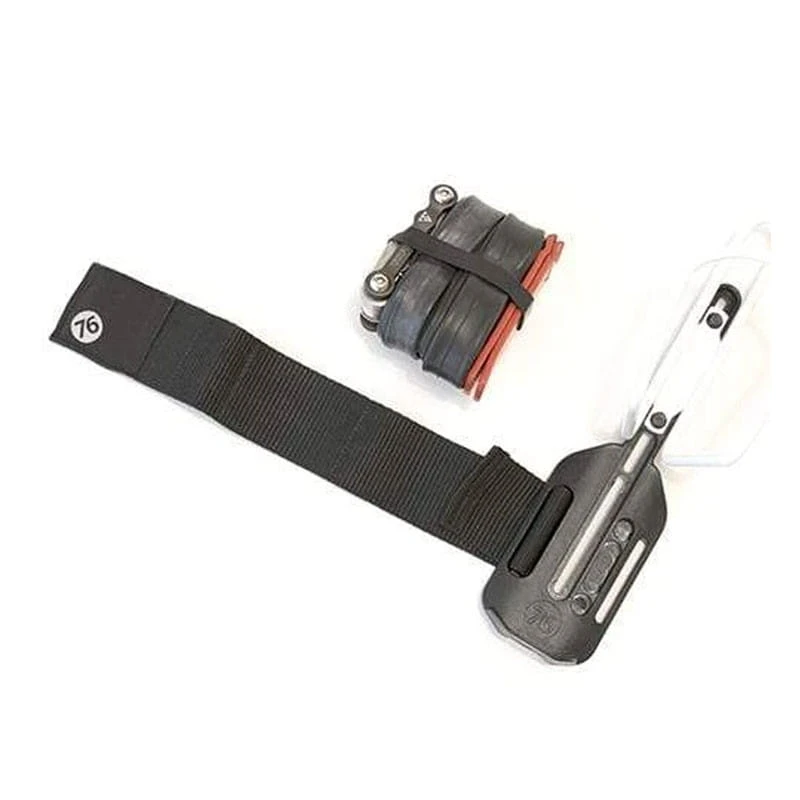 Dieser sicher verstellbare Strap befestigt 29er Schlauch, Hebel, Multitool und CO2-Patronen. Robuste Silikonbänder zur Verbindung der Gegenstände untereinander sind ebenfalls enthalten. Ein durchdachtes Detail: im Boden der Halterung sind Ausbuchtungen für Ersatz-Kettenschlösser eingearbeitet. Das ganze System wiegt nur 72 Gramm inklusive Schrauben und ist damit die vielleicht schlankeste Befestigung überhaupt. Als Zubehör sind außerdem ein wetterfestes Dry Bag und ein Zip Case erhältlich, die perfekt zur Halterung passen.