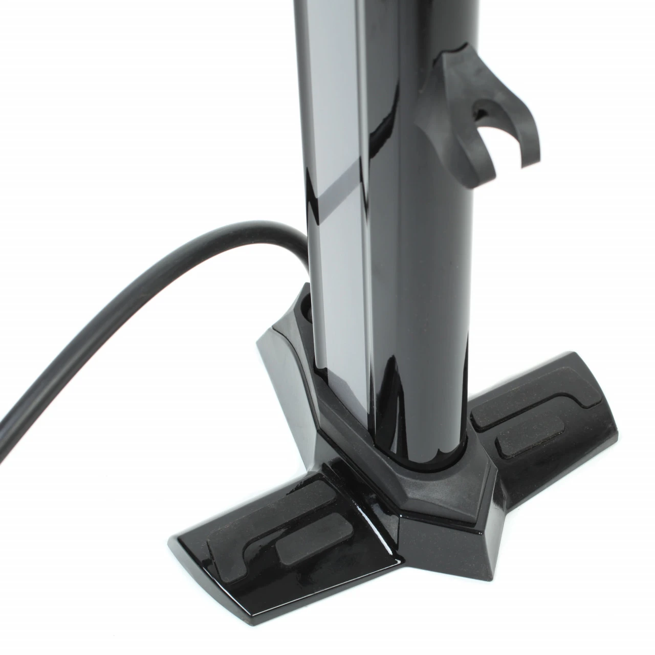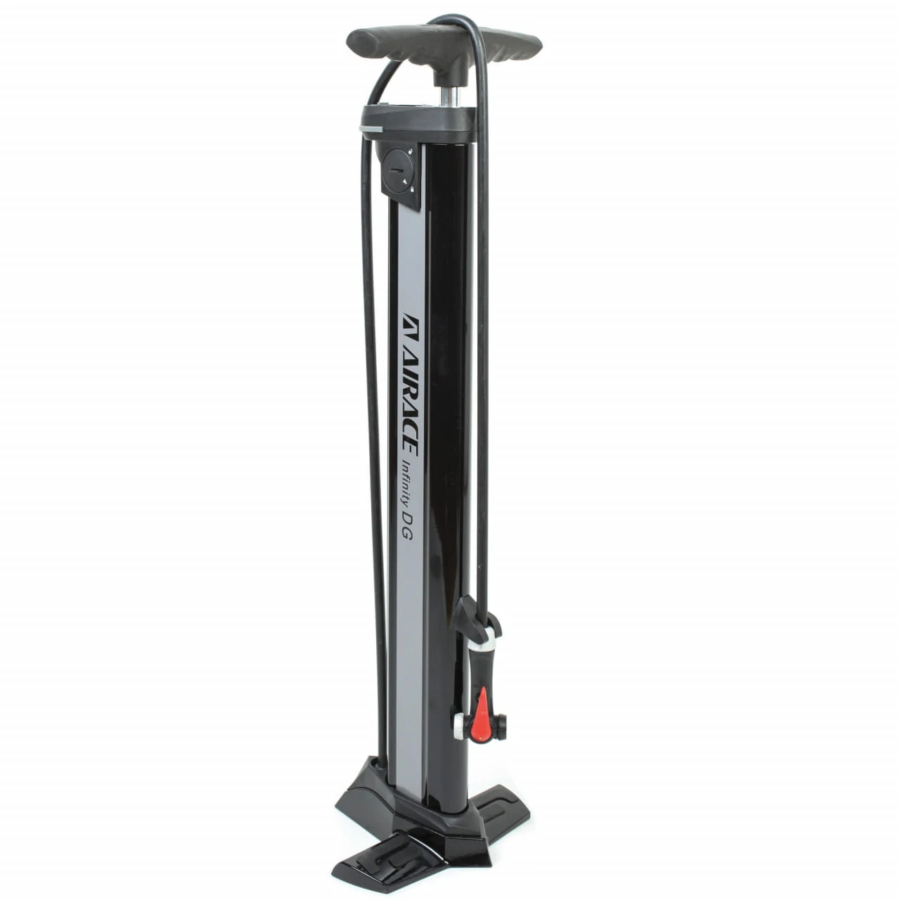 Eine der hochwertigsten Pumpen von Airace! Sie hat einen robusten Alukörper und der Standfuß ist auch aus Aluminium. Damit ist gewährleistet, dass sie lange hält und vor allem auch die sehr hohen Luftdrücke von bis zu 16,5 Bar pumpen kann. 16,5 Bar benötigt man zwar nicht im normalen Bike-Alltag, aber die hohe Kapazität bedeutet gleichzeitig, dass die üblichen 8,5-11 Bar sehr einfach zu pumpen sind und keine Herausforderung für die Pumpe darstellen.