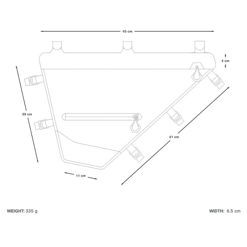Diese Rahmentasche macht sich den gesamten Raum zwischen Ober- und Unterrohr zu Nutze und schafft viel Stauraum. Damit eignet sie sich perfekt für längere Bikepacking-Touren, auf denen du auch sperrige Gegenstände wie zum Beispiel Zeltstangen oder Kochequipment brauchst. Der niedrige Schwerpunkt einer Rahmentasche ist auch für’,s Handling und den Fahrkomfort vorteilhaft, denn damit sind schwere Lasten gut verteilt. Auch für Carbonrahmen sind die Taschen der Expedition-Serie ideal: Die insgesamt acht Befestigungspunkte verbinden die Full Frame Pack-Rahmentasche sicher mit dem Rahmen, ohne das Carbonmaterial zu beschädigen.