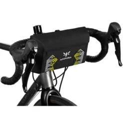 Die Tasche ist auf breitere Rahmendreiecke zugeschnitten und aus leichtem wetterfestem Laminat geschneidert, das auch widerstandsfähig genug für den Off-Road-Gebrauch ist. Die Tasche ist stabil genug, um auch schwerere Dinge aufzunehmen und damit den Schwerpunkt des Rades niedrig zu halten.