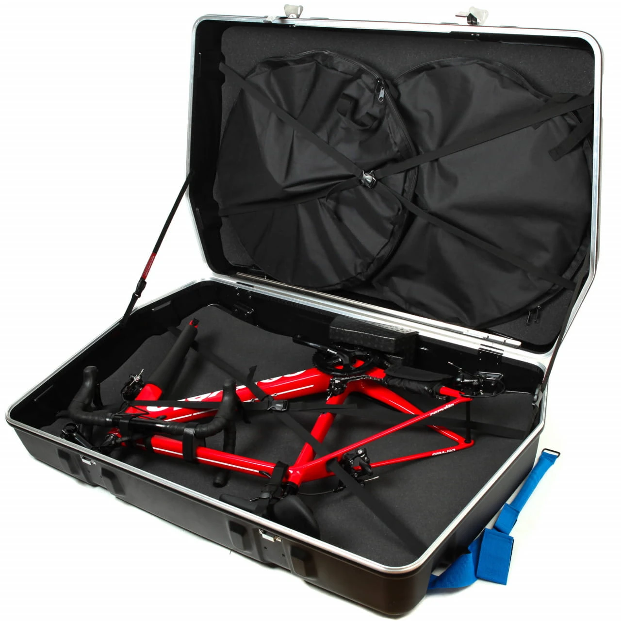 Die beiden Schalenhälften sind voneinander ganz einfach trennbar. Einzeln flach auf den Boden gelegt kannst du nun in Ruhe und mit Bedacht alles verstauen.Dein Bike kommt in die eine Schalenhälfte und deine Laufräder kommen in die zweite Hälfte. Viele kleine Details machen dir das Packen leichter, z. B. der Kettenstrebenschutz, die Abstandshalter für den Lenker und die Taschen für die Laufräder.Der Koffer ist so geräumig, das auch Triathlonräder mit dem Aerolenker eingepackt werden können. Auch 29 Zoll MTBs finden Platz. Und dann bleibt immer noch Platz für deine Radschuhe, Kleidung und Werkzeug. Das spart Gewicht und Platz in deinem normalen Gepäck!