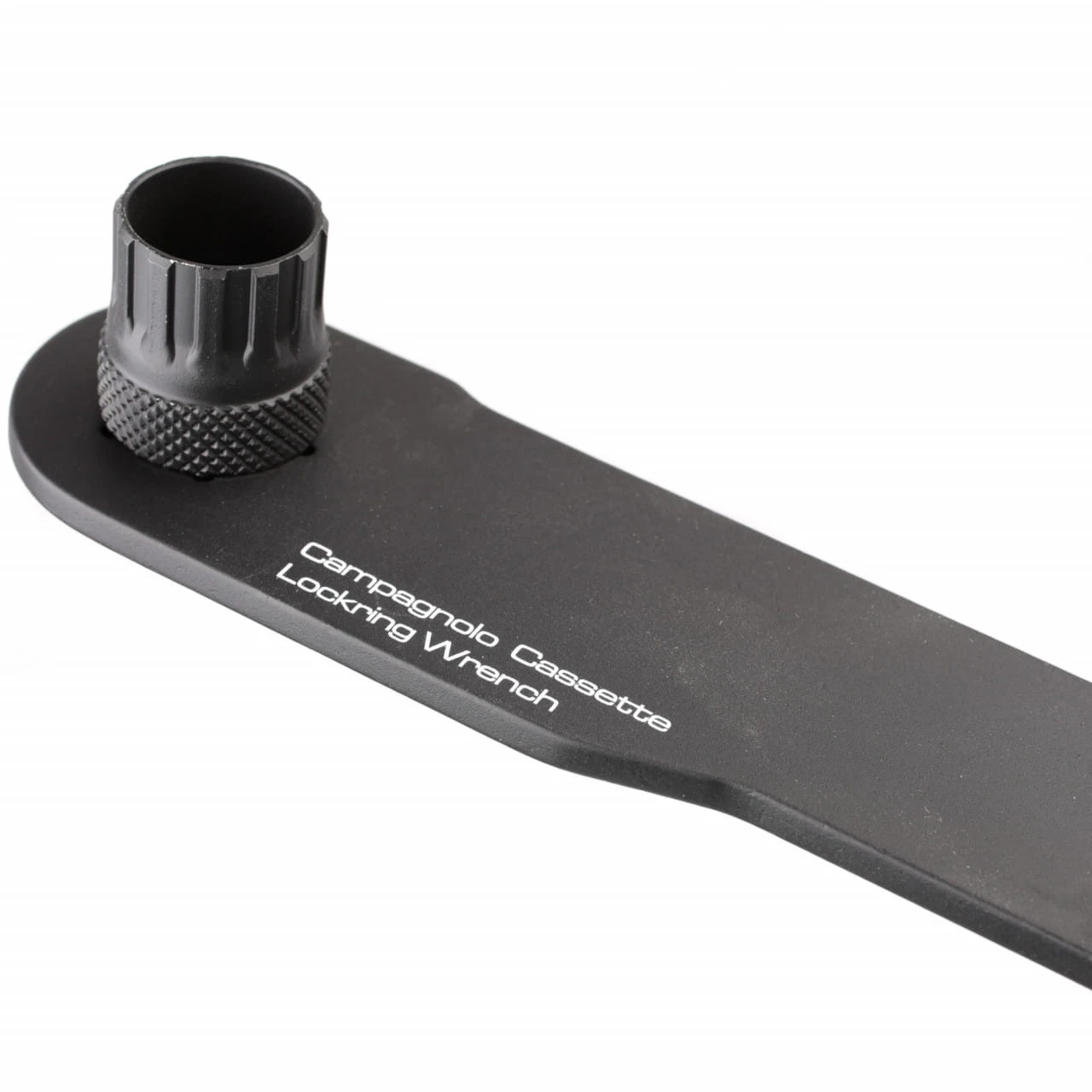 Dieser Kassettenabzieher passt für alle Campa-Kassetten, egal ob 9fach, 10fach oder 11- und 12fach. Wird für die Montage und Demontage – in Verbindung mit z.B. Kettenpeitsche – genutzt.