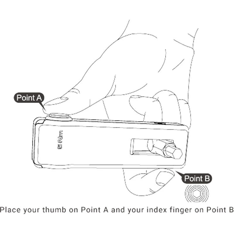 Genau hier kommt dieses handliche Drehmoment-Tool von Birzman ins Spiel. Es ist sozusagen kombinierter Griff und Halter für die Bits. Am Ende des Griffs befindet sich ein Druckknopf. Beim Schrauben platzierst du hier den Daumen – sind 5 Newtonmeter Drehmoment erreicht, klickt der Knopf.