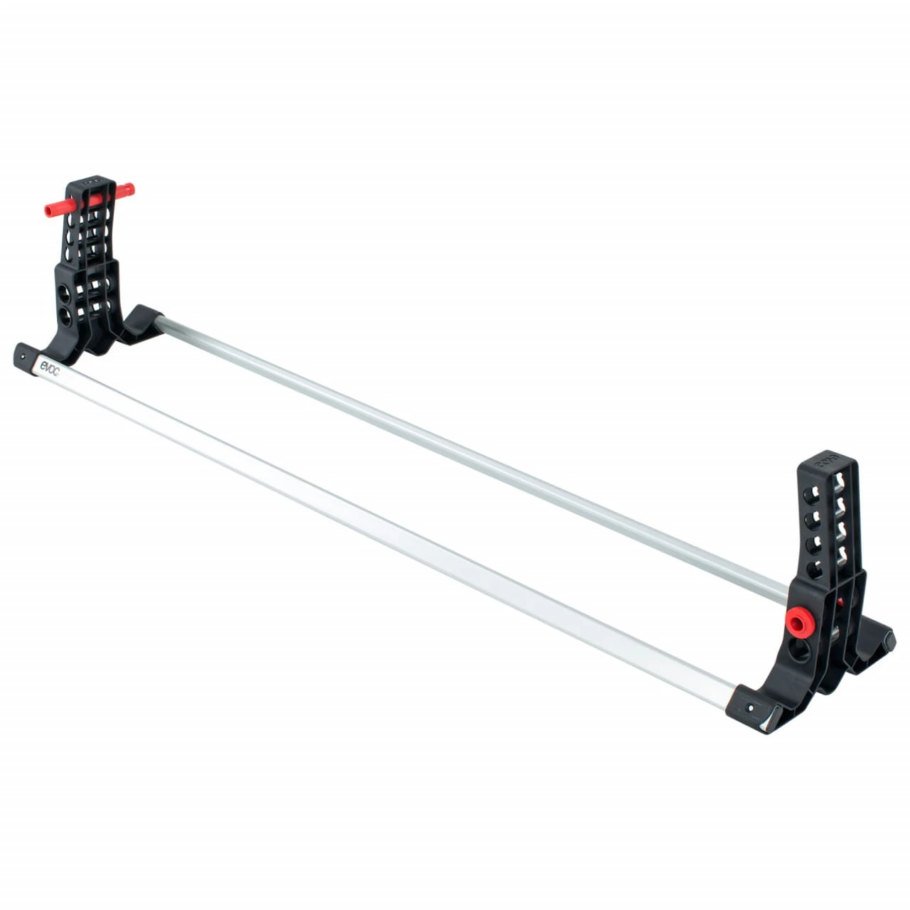 Die Träger zwischen den Achsaufnahmen sind ausfahrbares Zweistufensystem gestaltet. Dadurch kannst du den Träger für variable Achsstände anpassen und für alle Rahmengrößen und -Typen verwenden. Der variable Radstand beträgt 123-130 cm. Die Montageanleitung mit Teileliste kann hier eingesehen werden.