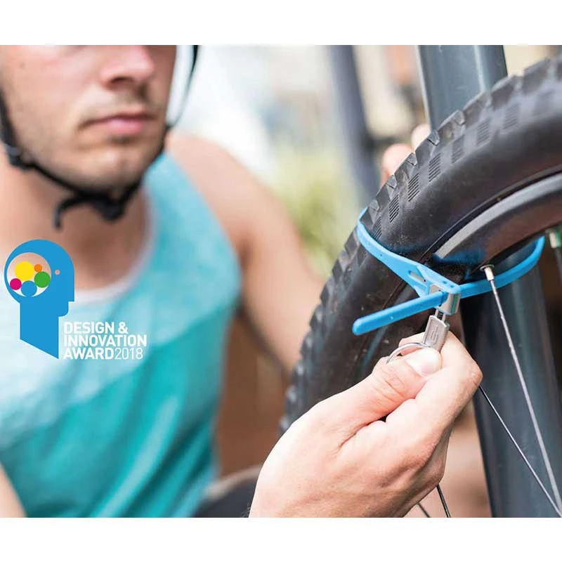Wer kennt sie nicht die Situationen: Bei der RTF das Rad nur kurz draußen stehen lassen, beim Wettkampf kurz die Startunterlagen holen, mit Freunden auf Mallorca kurz einen Kaffee trinken. Oft hat man zwar einen Blick auf das Rad, aber wenn es einer schnappt und schnell genug ist, ist es weg. Mit dem Z-Lok hat man jetzt eine ultra-leichte Lösung: einen Kabelbinder mit Stahlkern! Nur mit dem mitgelieferten Spezial-Werkzeug (Schlüssel) zu öffnen. Wie ein echter Kabelbinder ist das Schloss so flexibel, dass es überall sehr eng angebracht werden kann und nicht sofort sichtbar ist (wertvolle Sekunden gegen den Dieb).