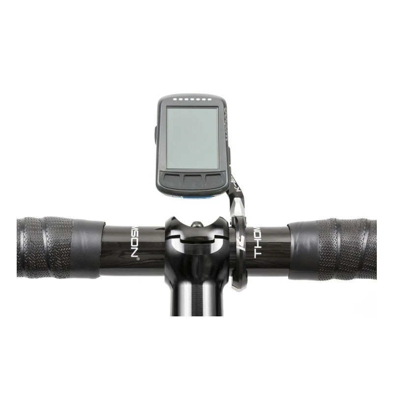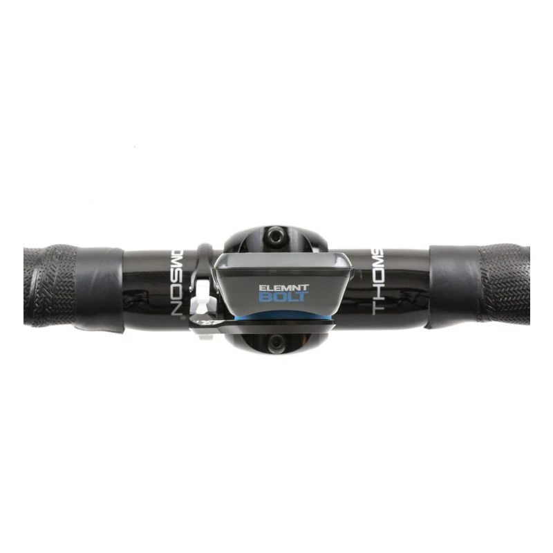 Der K-Edge Pro Race Mount ermöglicht eine mittige Einstellung in Verlängerung des Vorbaus. Das Gehäuse des Elemnt Bolt integriert sich förmlich in den Halter.