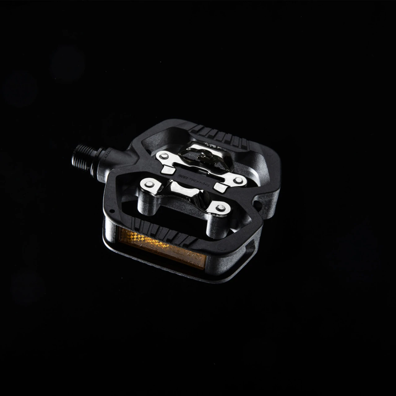 Die Hybridpedale – eine Seite Plattformpedal, andere Seite Klickpedal