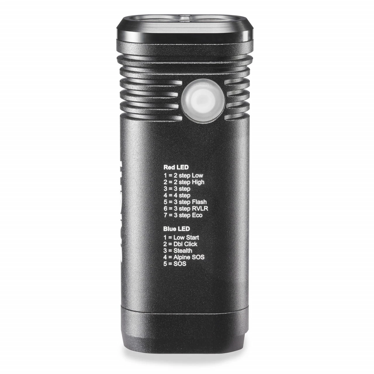 Angesichts der kompakten Maße, mit denen die Piko in jede Hosentasche passt, würde man kaum vermuten, wie viel Leuchtkraft in dem kräftigen Alu-Gehäuse steckt: Bei vollen 16 Watt strahlen 1600 Lumen bis zu 200 Meter weit. Natürlich geht es auch ökonomischer: bei 720 Lumen beispielsweise hält der Akku 4 Stunden, im niedrigsten Modus mit 40 Lumen sind es ganze 80 Stunden.
