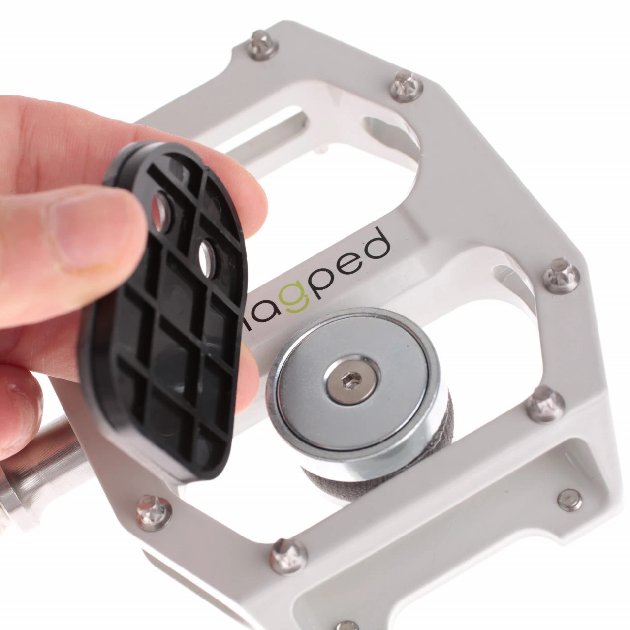 Durch eine magnetische Metallplatte, welche an der Unterseite des Schuhs montiert wird, wird die Verbindung zwischen Pedal und Schuh hergestellt. An den Pedalen sind Neodym Hochleistungsmagneten befestigt, welche die Platte an der Unterseite des Schuhs anziehen. Das “,Einklicken˜ wird damit zum Kinderspiel. Das “,Ausklicken˜ ist gleichermaßen einfach wie genial. Der Magnet hat in der Vertikale die höchste Anziehungskraft. Zu den Seiten allerdings, hat der Magnet eine stark verringerte Wirkung. Dadurch könnt ihr den Schuh durch eine leichte Seitwärtsbewegung vom Pedal lösen. Zusätzlich sind die flachen Platten weniger anfällig für Schmutz und reduzieren die Stolpergefahr beim Gehen.
