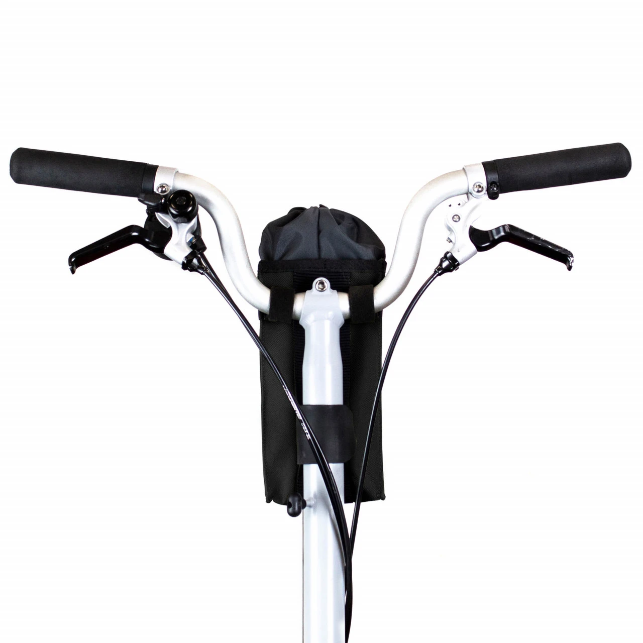 Die City Stem Bag von Restrap ist hergestellt aus langlebigem, wasserdichten Nylon und bietet die einfachste Lösung für den Transport einer Wasserflasche, Snacks oder anderen Kleinigkeiten. Die Stem Bag bewahrt den Inhalt sicher und trocken auf und hat ein Packvolumen von bis zu 1 L. Durch die einfache Zugschnur-Justierung kannst du auch während der Fahrt schnell auf die Vorbautasche zugreifen. Die Vorbautasche ist handlich und praktisch, die Höhe der Tasche kann mit der Justierung bis zu 27 cm erweitert werden. Dank den Velcro-Straps kann sie an jedem Klappfahrrad kinderleicht angebracht und wieder entfernt werden. Die Stem Bag bewegt sich mit dem Vorbau und hat daher keinen Einfluss auf den Klappmechanismus deines Faltrads.