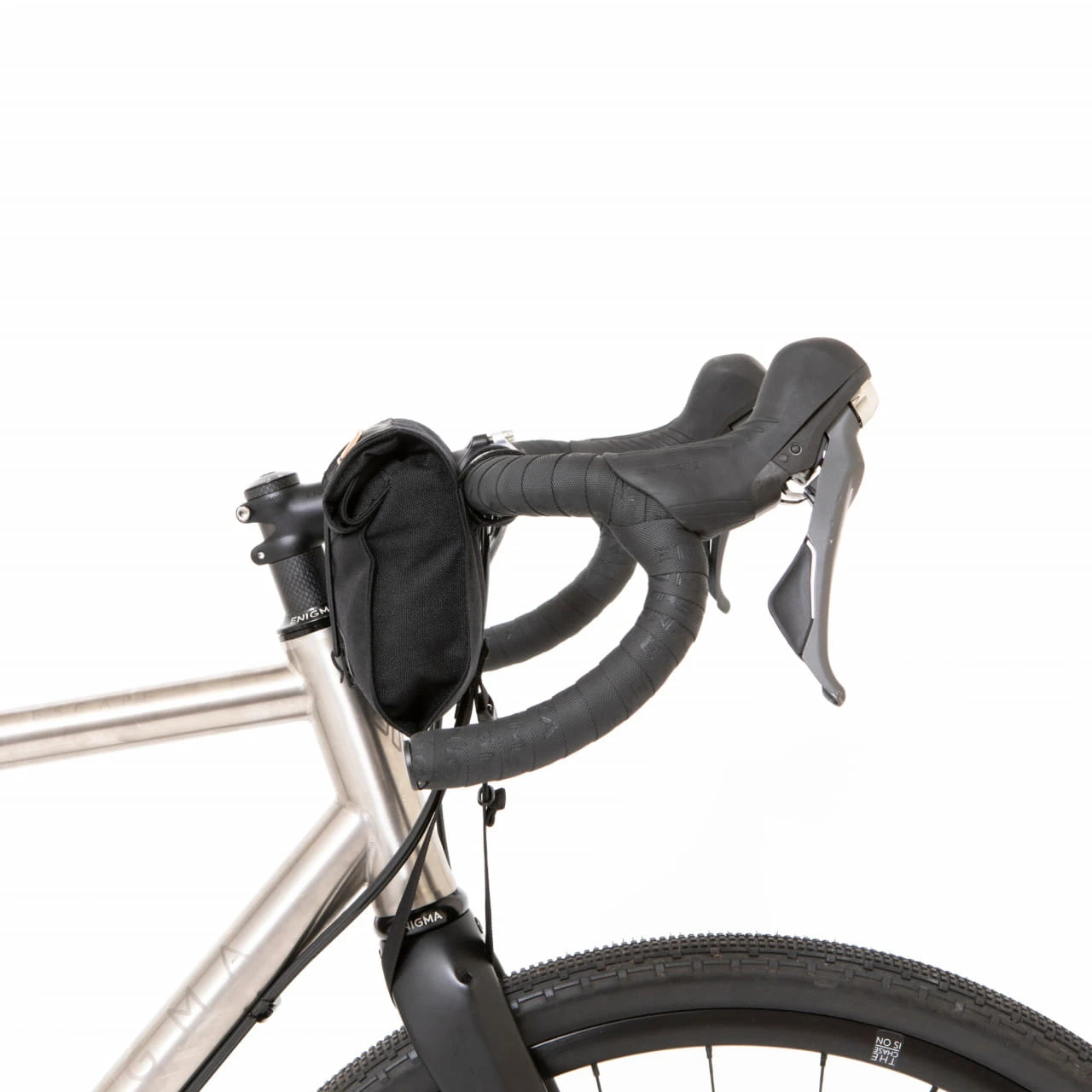 Die Tech Bag des britischen Herstellers Restrap ist ideal für den schnellen Zugriff auf wichtige persönliche Gegenstände – sei es das Smartphone, Geldbeutel, Schlüssel, Kreditkarte oder eine flache Kompakt- oder Actionkamera. Die Tasche kann mittig, auf beiden Seiten des Vorbaus sowie aus Fahrersicht sowohl vor als auch hinter dem Lenker befestigt werden. Damit ist sie variabel und unabhängig von bereits am Lenker montiertem Equipment einsetzbar. Die robusten und wasserabweisenden Materialien in Kombination mit dem Rolltop schützen den Tascheninhalt zuverlässig vor Schmutz und Feuchtigkeit. Bei Gravel- und Tourenrädern mit Scheibenbremse wird die Restrap Tech Bag mit dem unteren Riemen direkt an der Gabel befestigt. Bei anderen Rädern kann die Lenkertasche mit dem unteren Riemen alternativ auch am Steuerrohr befestigt werden.