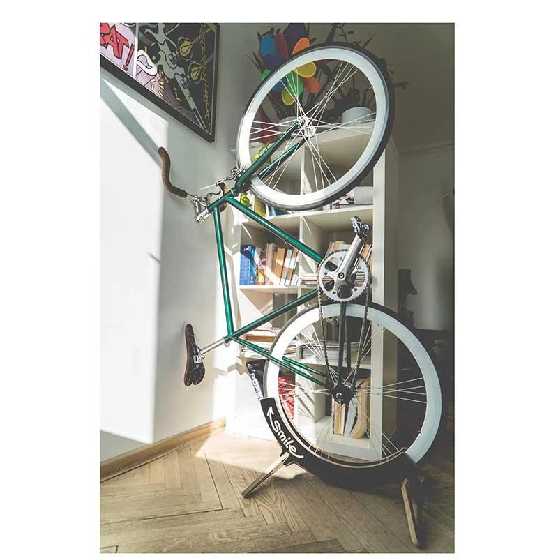 Die Anmutung von Holz und auch die Stabilität von Holz machen diesen Ständer zu einem echten Hingucker. Er steht sehr stabil und trotzdem kommt das Bike optisch zur Geltung. Man kann einfach das Hinterrad oder Vorderrad hineinschieben und das Rad steht stabil. Die Weite des Reifens lässt sich in kleinen Schritten einstellen, je nach dem welche Einschübe man benutzt und wenn man die Teile anders herum einsetzt (rechts/links) gibt es einen weiteren cm zum Einstellen.