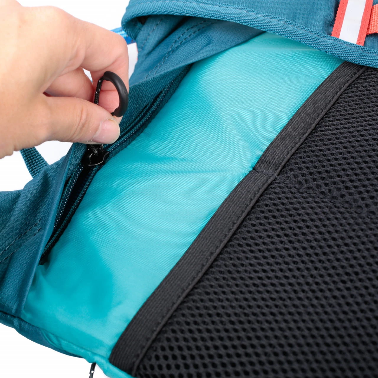 Für mehr Komfort beim Sport treiben, hat Source den Trinkrucksack mit einer Polsterung an den Schultergurten und am Rücken versehen. Sie federt das Gewicht der Trinkblase und des Equipments ab. Dank des Brustgurtes liegt der Rucksack zudem eng am Körper an. Soll der Durabag Pro in einem anderen Rucksack verstaut werden, kannst du die Schultergurte einfach in den Fächern im Rückenteil verschwinden lassen.